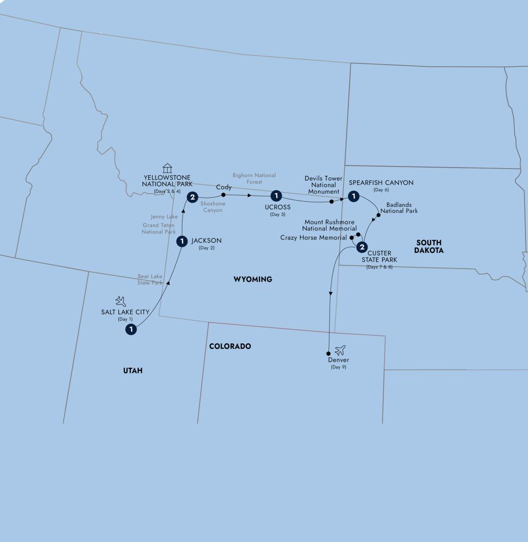 Before leaving Salt Lake City, take in the State Capitol building. Drive along the scenic Logan Canyon, over the Wasatch Mountain Range, and up to the Bear Lake. Stop for lunch near Bear Lake offering views of beautiful turquoise waters. Then, head north across the Oregon Trail to historic Jackson. Have your cameras ready for the famous elk antlers at central square. Eager shoppers will find a number of charming traditional boutique galleries to browse. Enjoy the rest of the evening at leisure, with your hotel located within walking distance of Jackson's Town Square.
