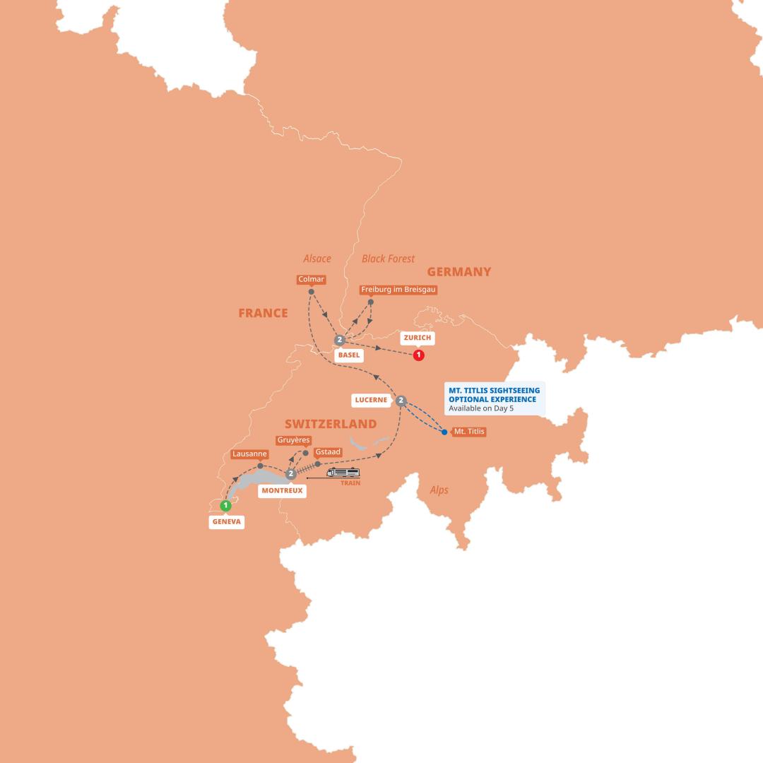 Launch your love affair with Switzerland in the sophisticated lakeside city of Geneva, an international city with all the charm of its Swiss traditions. After checking in to your hotel you'll have time to relax after your flight, or explore and discover the city. This evening, make your way to a dinner at a local restaurant to meet your Travel Director and fellow travelers to get a taste of the adventures to come.