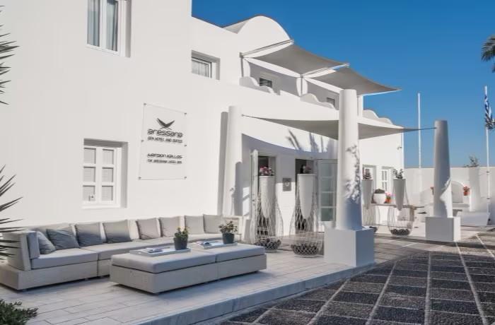 A distinctive, elegant home-away-from-home experience awaits at the Aressana Spa Hotel and Suites, where guests are surrounded with luxury, beauty and warm hospitality. The hotel blends the serenity of Cyclades life with the exciting buzz of Fira, Santorini, welcoming guests like old friends with heartfelt sincerity. The hotel incorporates design elements that strongly emulate the beauty and individuality of its island home, creating an ambiance that is light, spacious and ethereal.